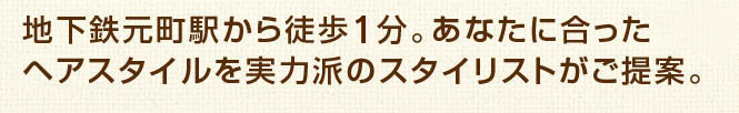 また、地下鉄元町駅から徒歩1分、夜8時まで営業してますのでお仕事帰りでも気兼ねなくご来店頂けます。